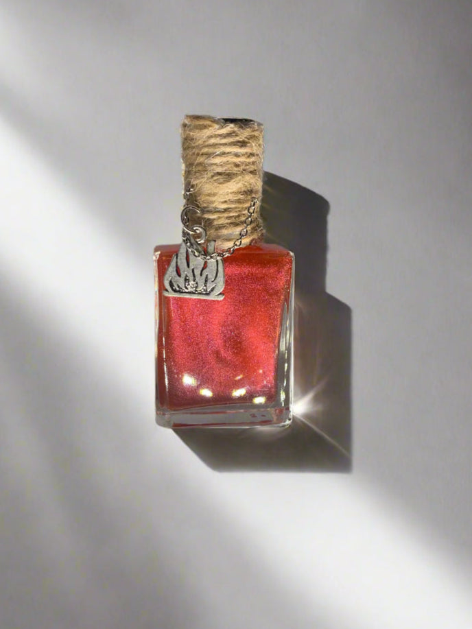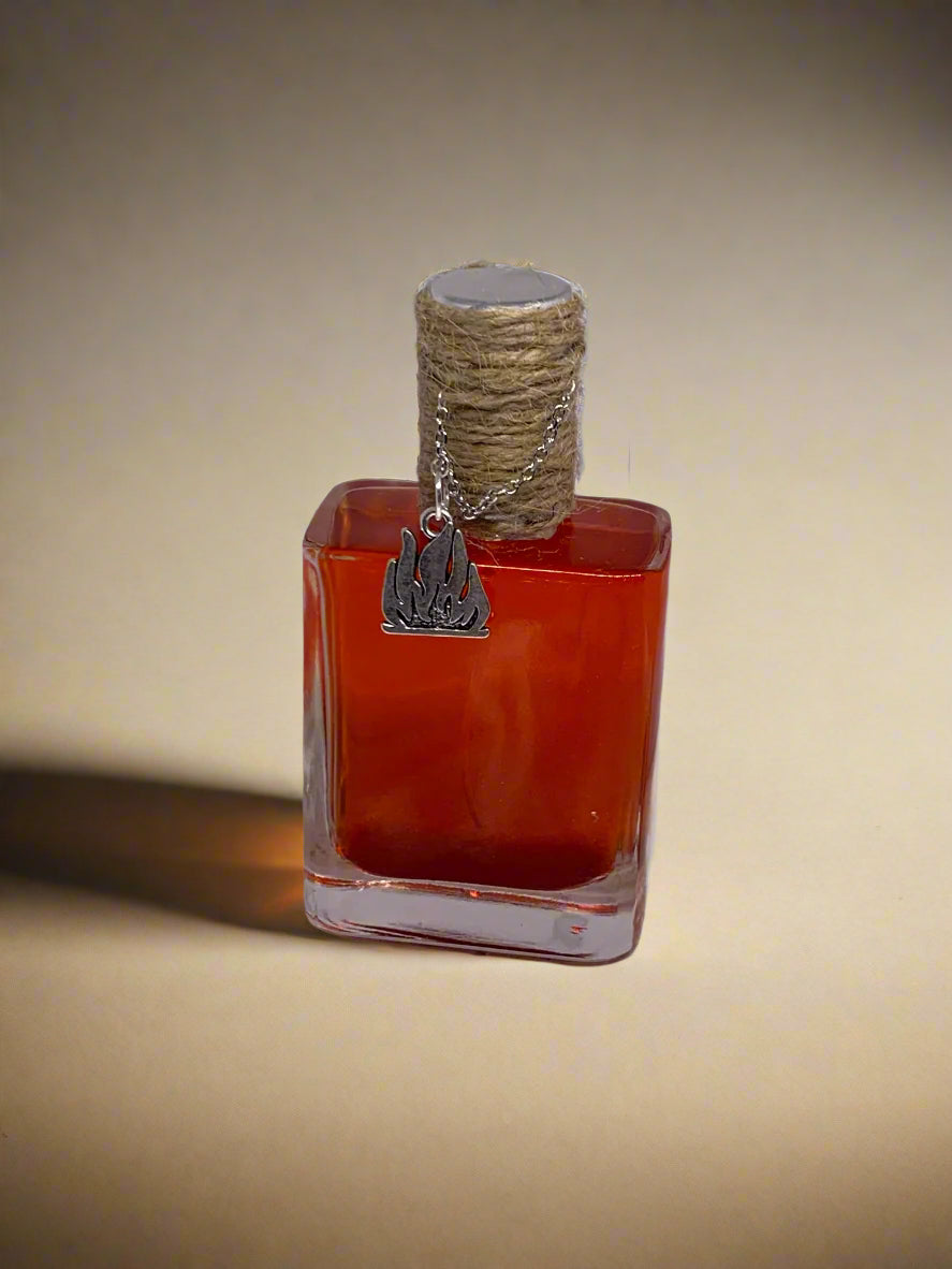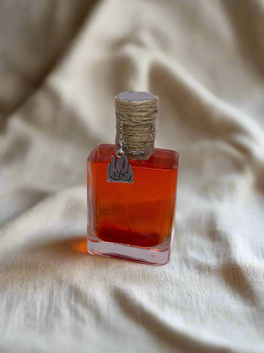 From flame and ash she rises - crimson and gold, pulsing with ancient heat and untold power. Molten pearls swirl in her wake, flickering like embers around a scent steeped in smoke, exotic woods and sun-warmed skin. One breath ignites the soul… and you’ll feel the fire awaken within.
